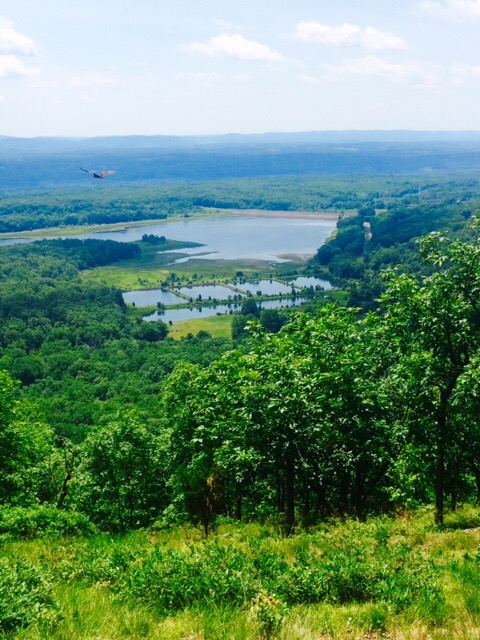 Below is Sunfish Pond, a glacial lake at 1400 ft elevation.