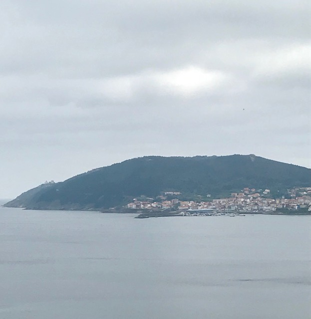 Below you can see the town of Fisterra and the point on which the lighthouse sits on Finisterre. It’s 1.5 miles past Fisterra to Finisterre. Then, of course, you have to walk back…which counts for nothing!